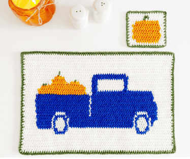 This fall placemat is so cute with a fun vintage inspired pickup truck. This could be created with so many colors to make it perfect for any fall table!