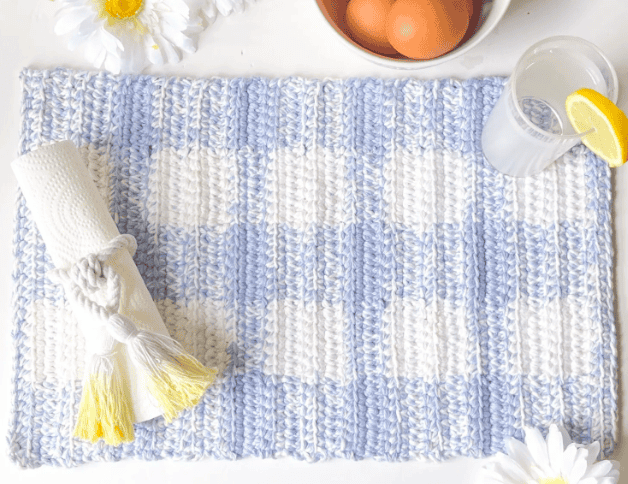 Tapestry Gingham Bunny Placemat Free Crochet Pattern