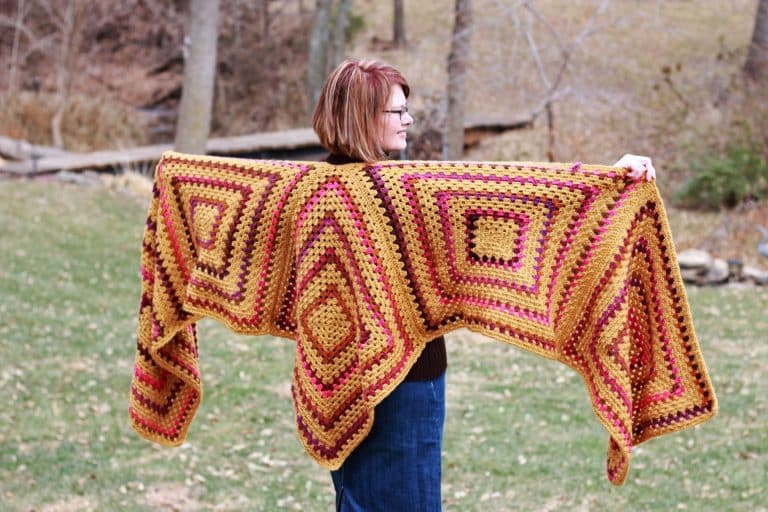 Inspired by the mountain landscapes, sunrises, and sunsets, this blanket using the granny spike stitch is sure to add beauty to any space.
