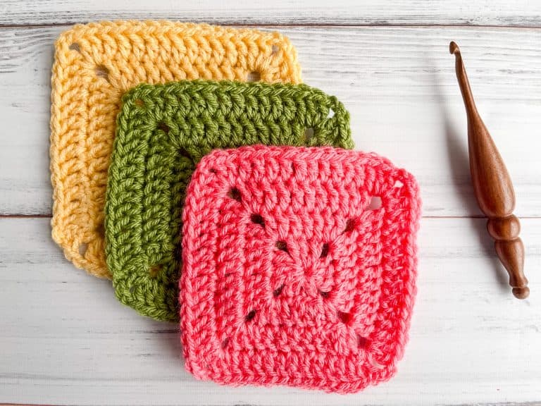 A solid granny square pattern made with all double crochet stitches makes this a versatile, easy, beginner-friendly solid granny! Crochet squares are so versatile and can be used in so many different projects! You can join several squares together for blankets, scarves, hats and more.