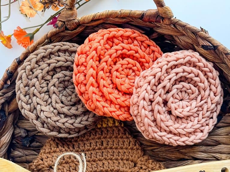 You won’t find intricate lace or complex colorwork here. Instead, you’ll find the kind of projects that feel manageable on a low-motivation day — useful, cute, and just interesting enough to keep your hands moving. Whether you’re rummaging through your stash for a quick crochet project or looking to make something useful for your home, there’s something here for you.