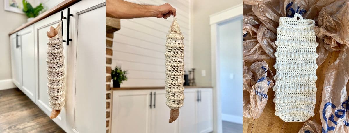 Follow this free crochet plastic bag holder pattern to organize all your loose plastic grocery bags in this functional and fabulous place.