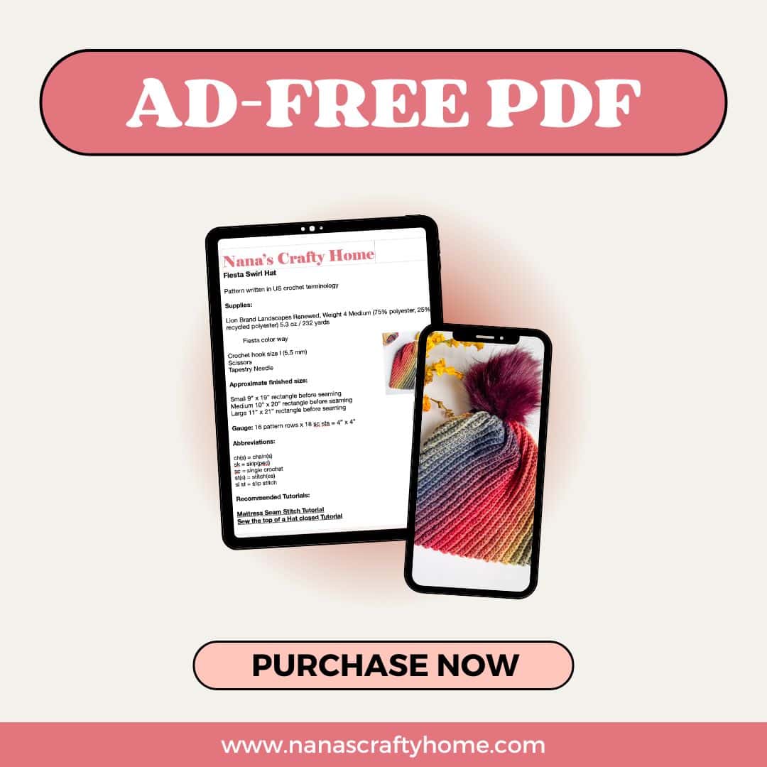Purchase the ad-free pdf of my Fiesta Ribbed Swirl Hat for a small fee. Thank you so much for supporting my work!