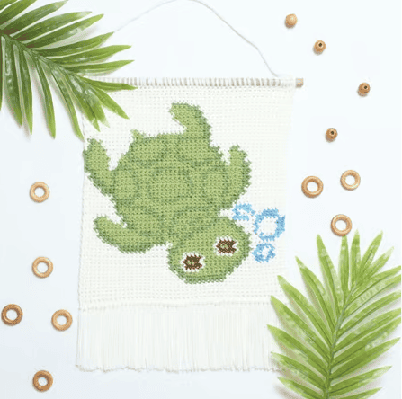 What an adorable and fun wall decor perfect for a baby’s sea turtle themed nursery! This simple tapestry crochet project would make a great gift!