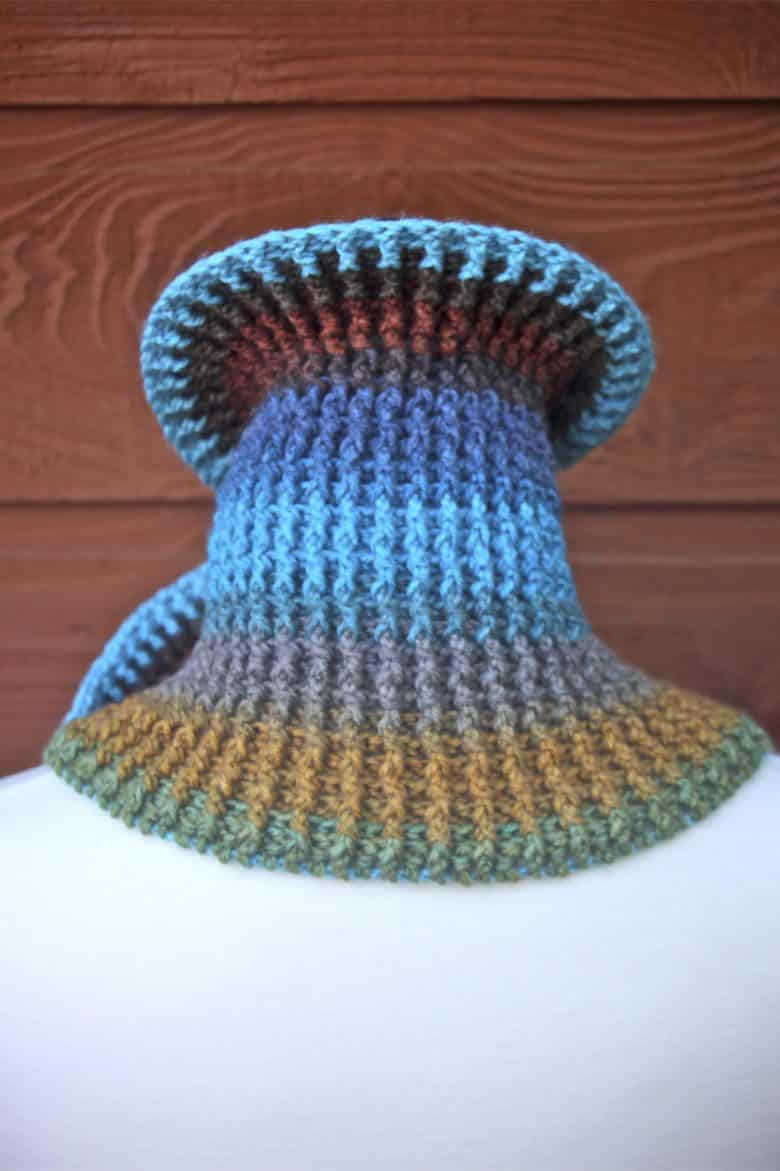 I have included video tutorials below for the ribbed stitch pattern used for the cowl as well as a tutorial to show you how to fold and finish the cowl.