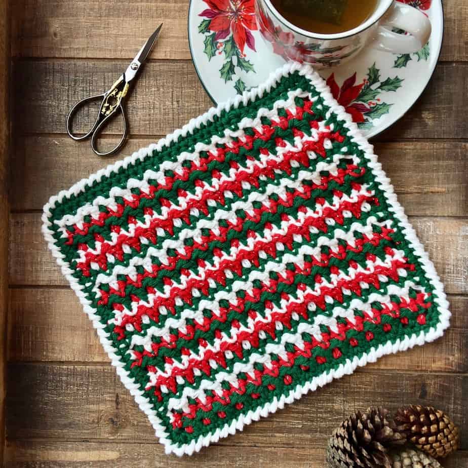 I thought I would take a break from all of those scarf and cowl patterns I have been working on over the last few weeks — Misty Morning Triangle Scarf, Be Weaving Cowl and Cascading Colors Cowl — and spend some time working on simple and easy patterns that could be stocking stuffers for Christmas. Â I love to give dishcloths every year as they are so useful and can be made in such a short amount of time.